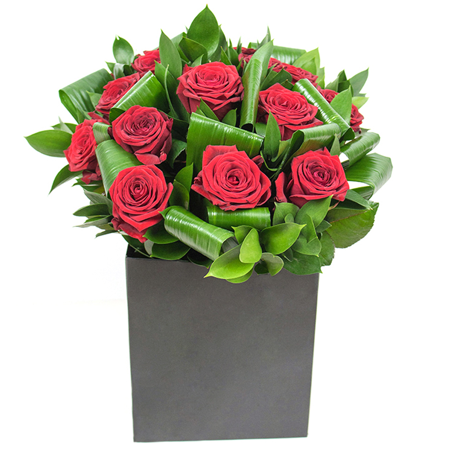 I was amazed by the vibrant red roses and the elegant aspidistra leaves. Perfect for the occasion!